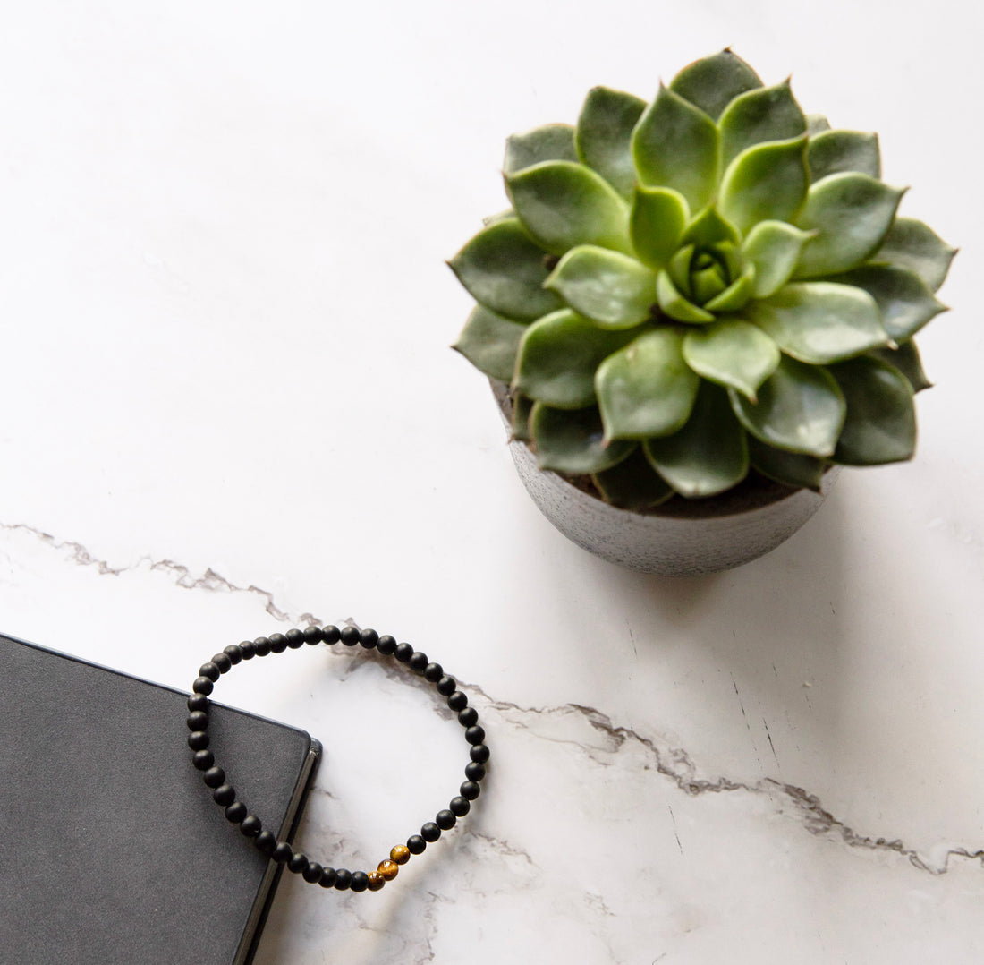 Matte Onyx & 3 Tiger Eye bead bracelet 4mm