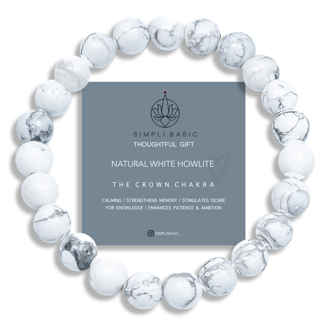 HEALING WHITE HOWLITE BEAD BRACELET 8MM