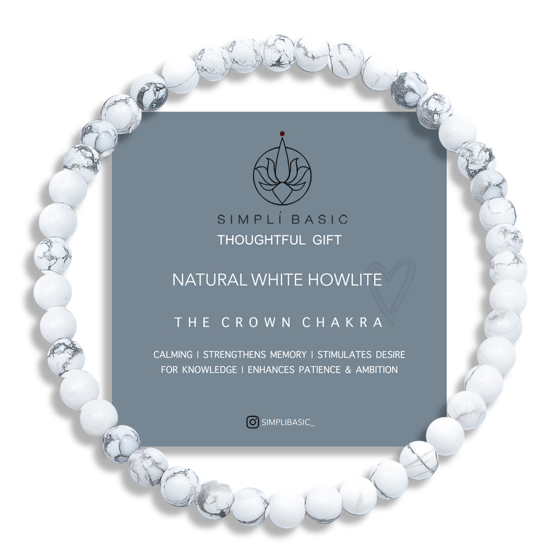 HEALING WHITE HOWLITE BEAD BRACELET 4MM