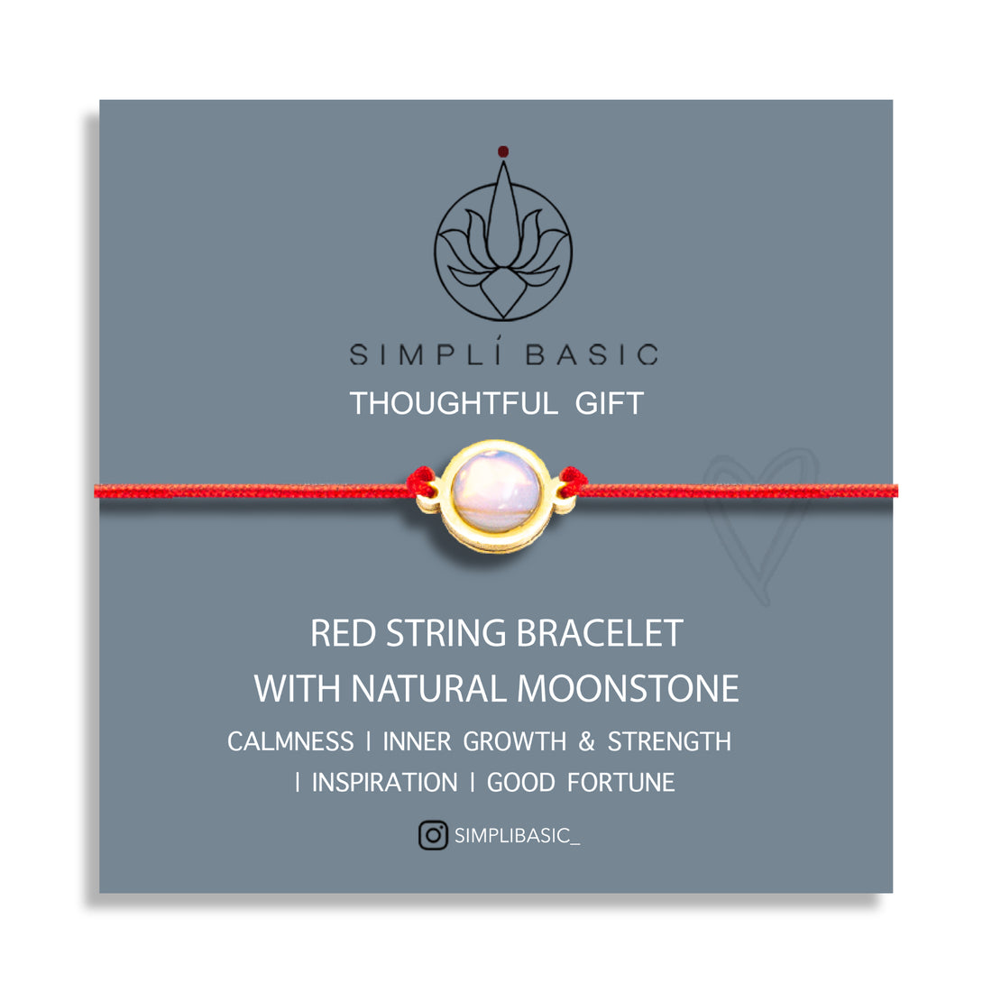 NATURAL MOONSTONE & RED STRING BRACELET – ADJUSTABLE SOFT CORD