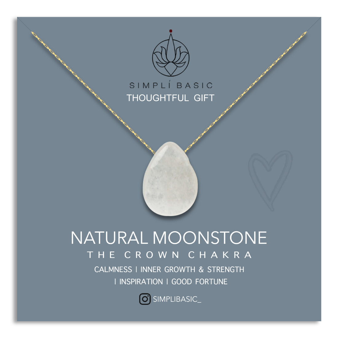 NATURAL MOONSTONE TEARDROP 18K GOLD PLATED CHAIN NECKLACE