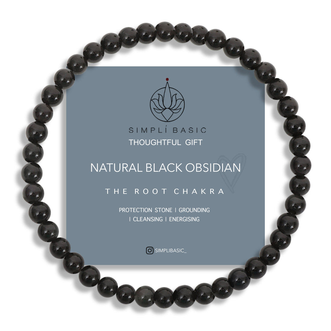 HEALING BLACK OBSIDIAN BEAD BRACELET 4MM