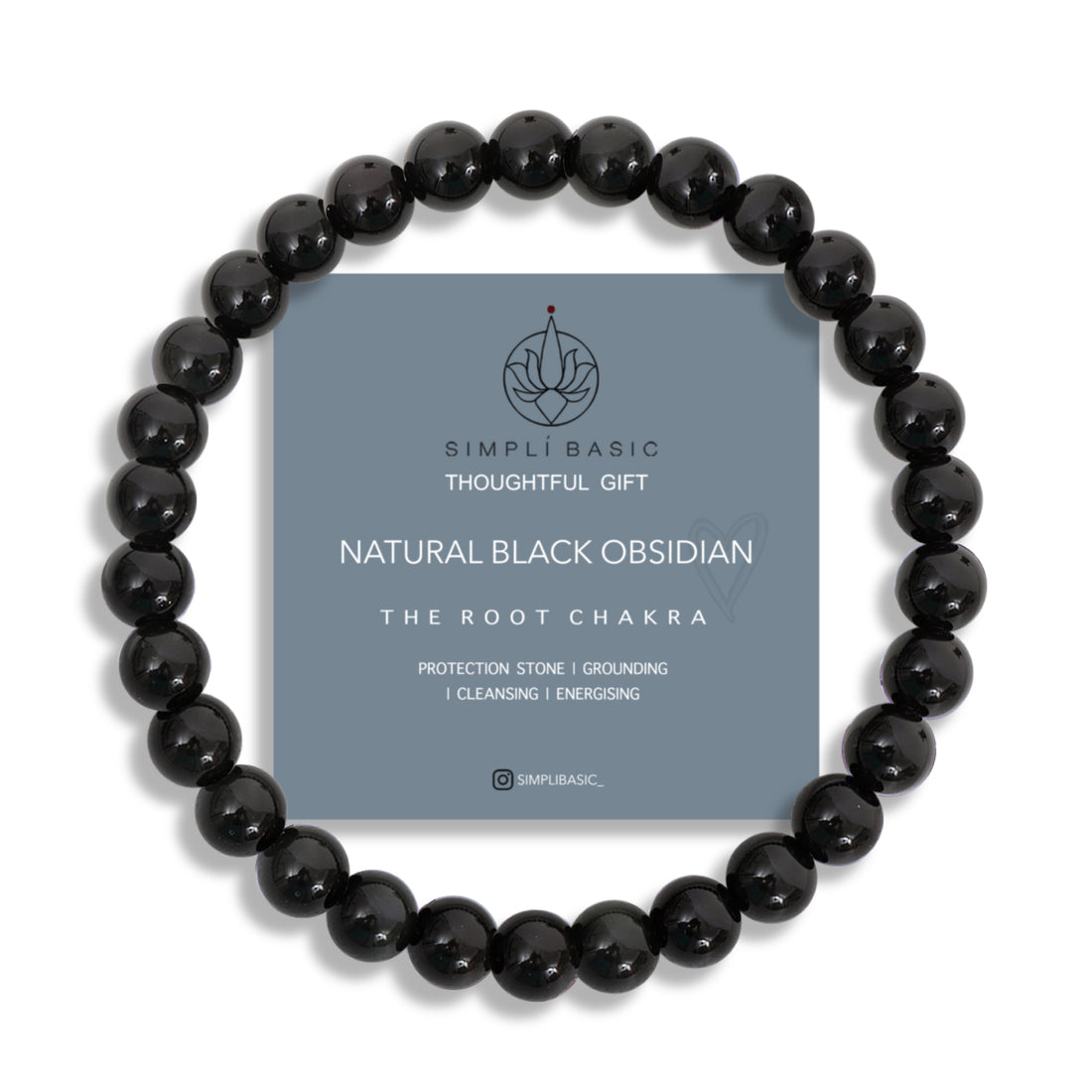 HEALING BLACK OBSIDIAN BEAD BRACELET 6MM