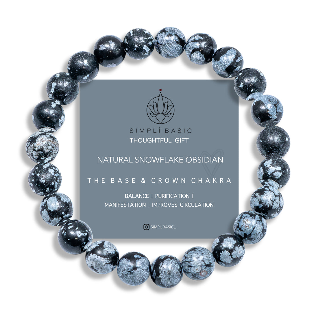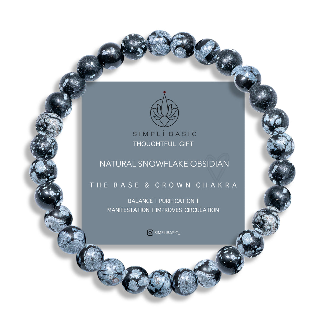 HEALING SNOWFLAKE OBSIDIAN BEAD BRACELET 4MM