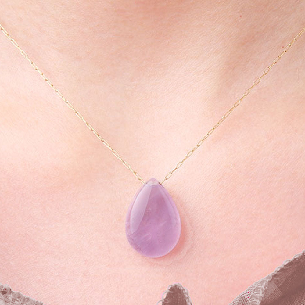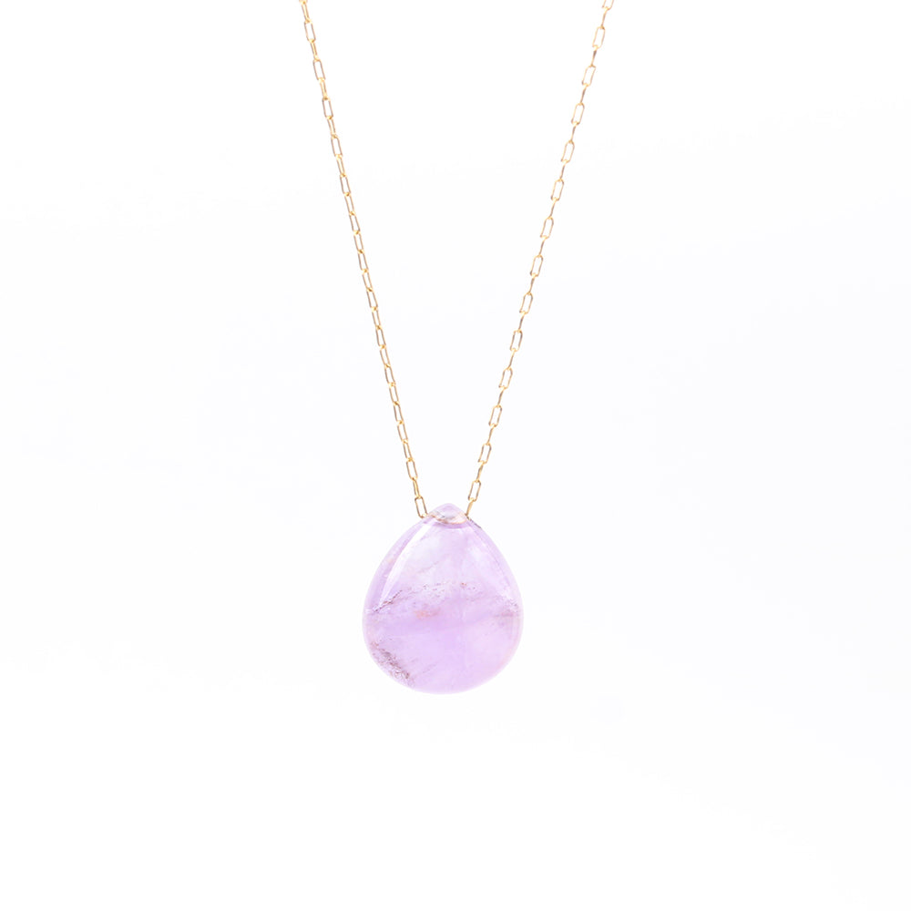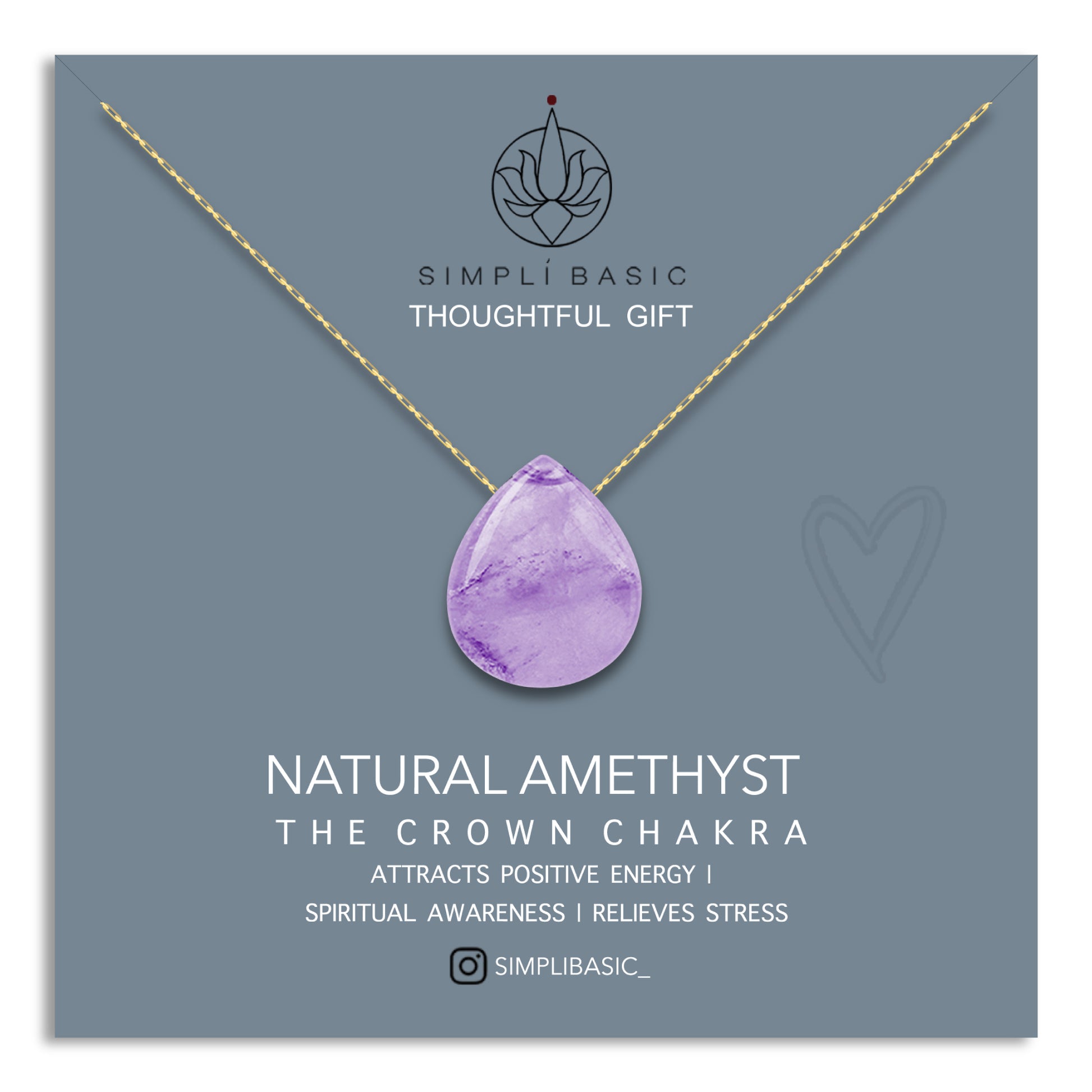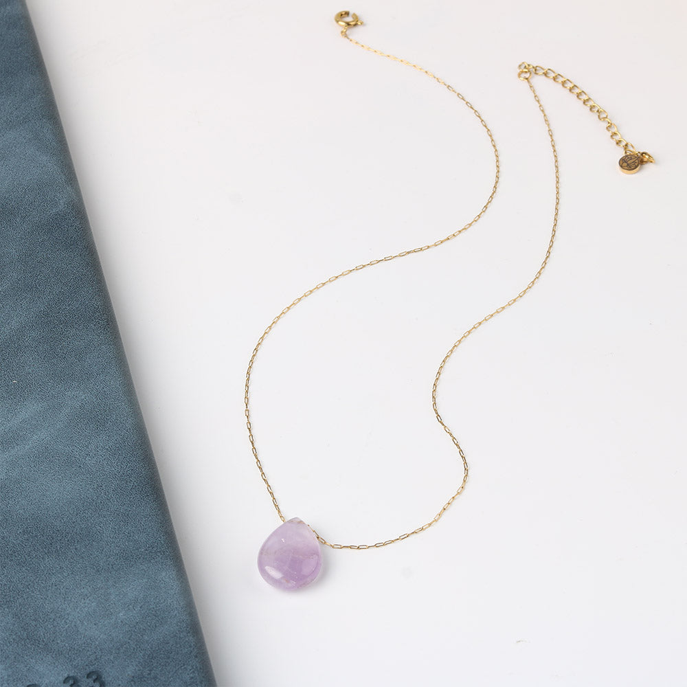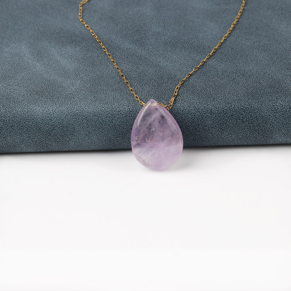 NATURAL AMETHYST TEARDROP 18K GOLD PLATED CHAIN NECKLACE