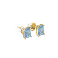 Aquamarine Emerald Cut Stud 14k Gold plated