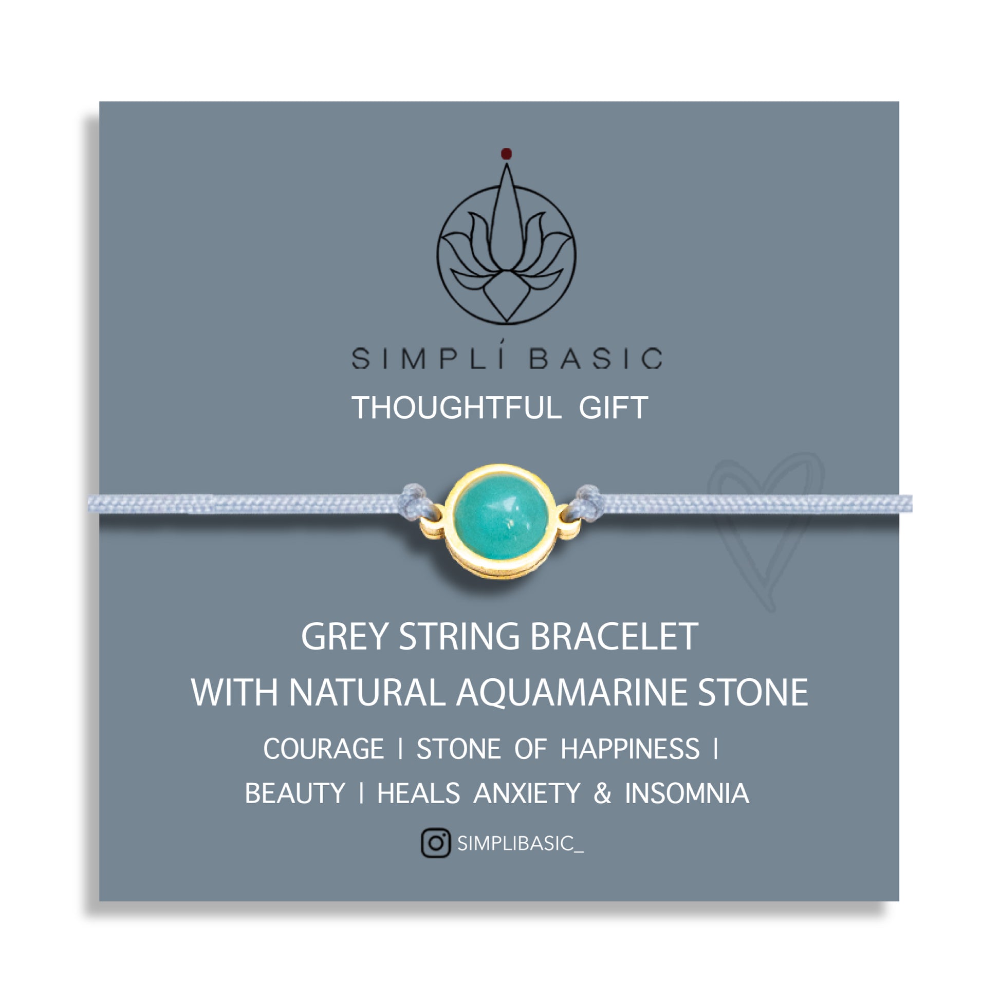 NATURAL AQUAMARINE & GREY STRING BRACELET – ADJUSTABLE SOFT CORD