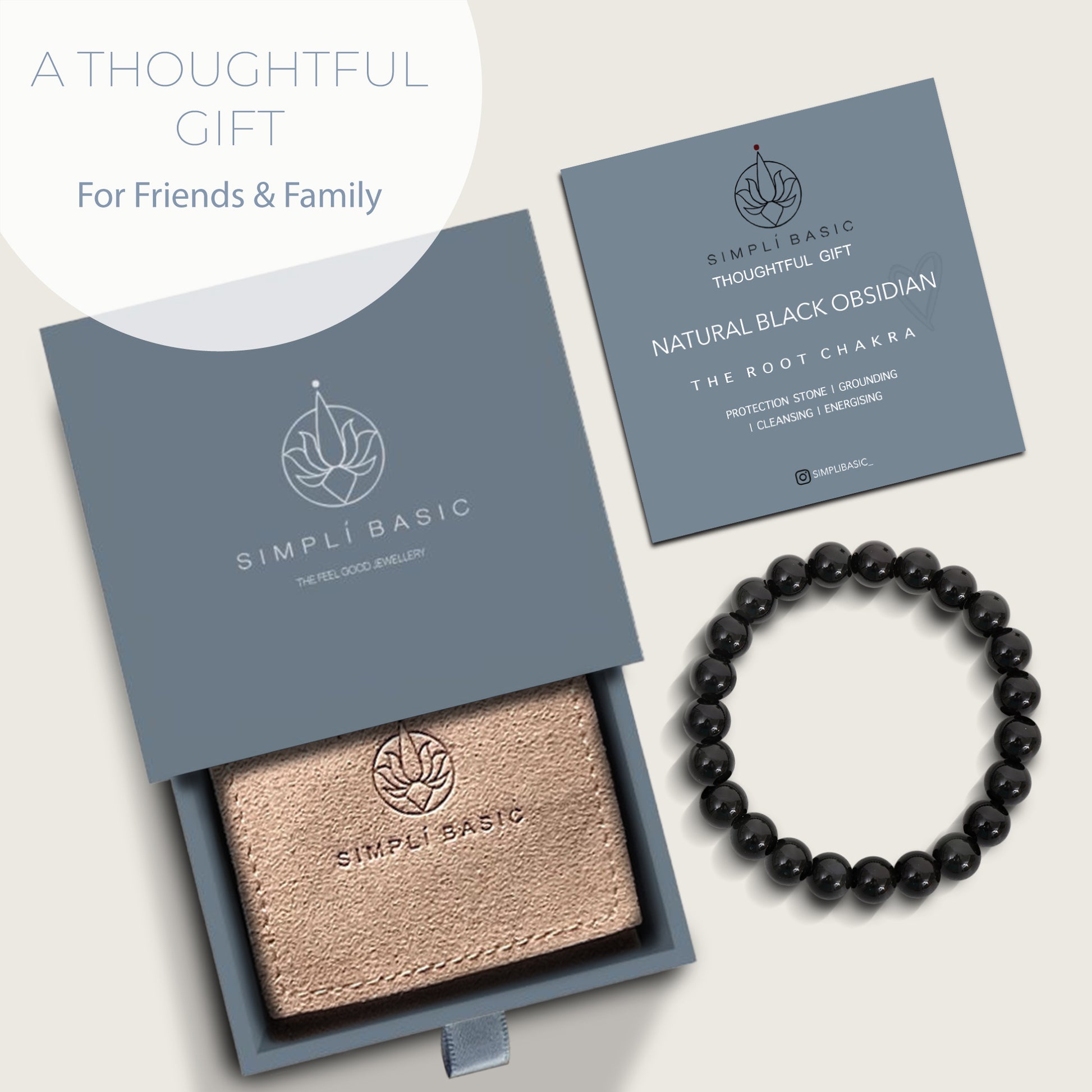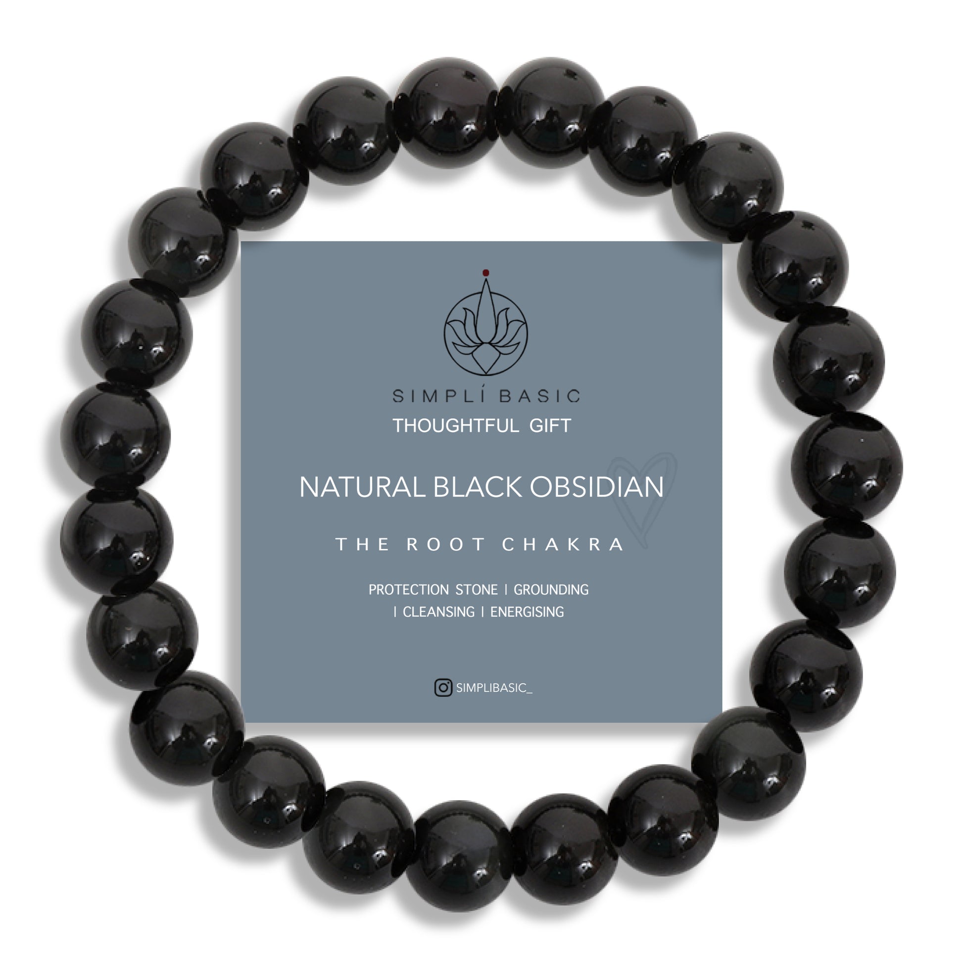 HEALING BLACK OBSIDIAN BEAD BRACELET 8MM