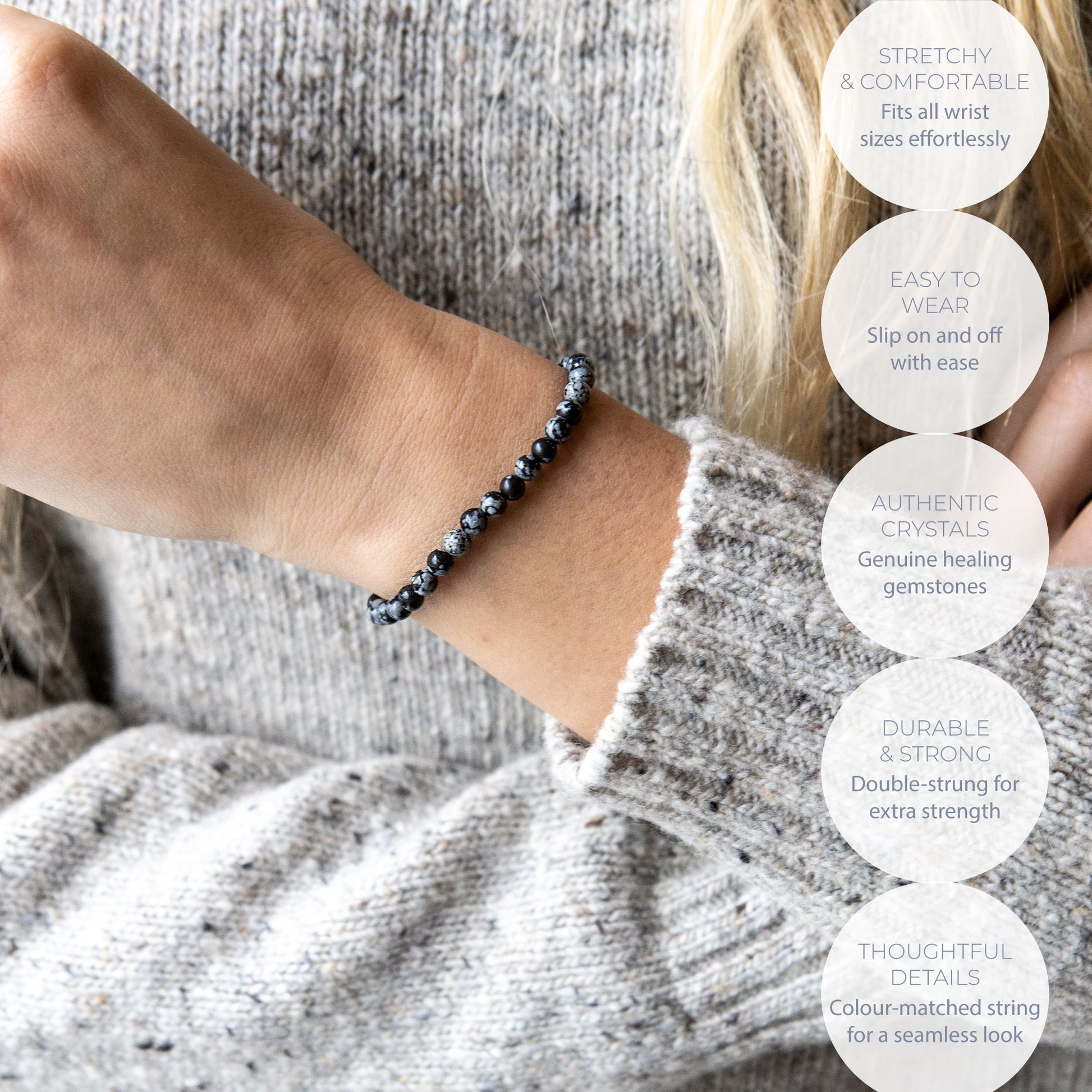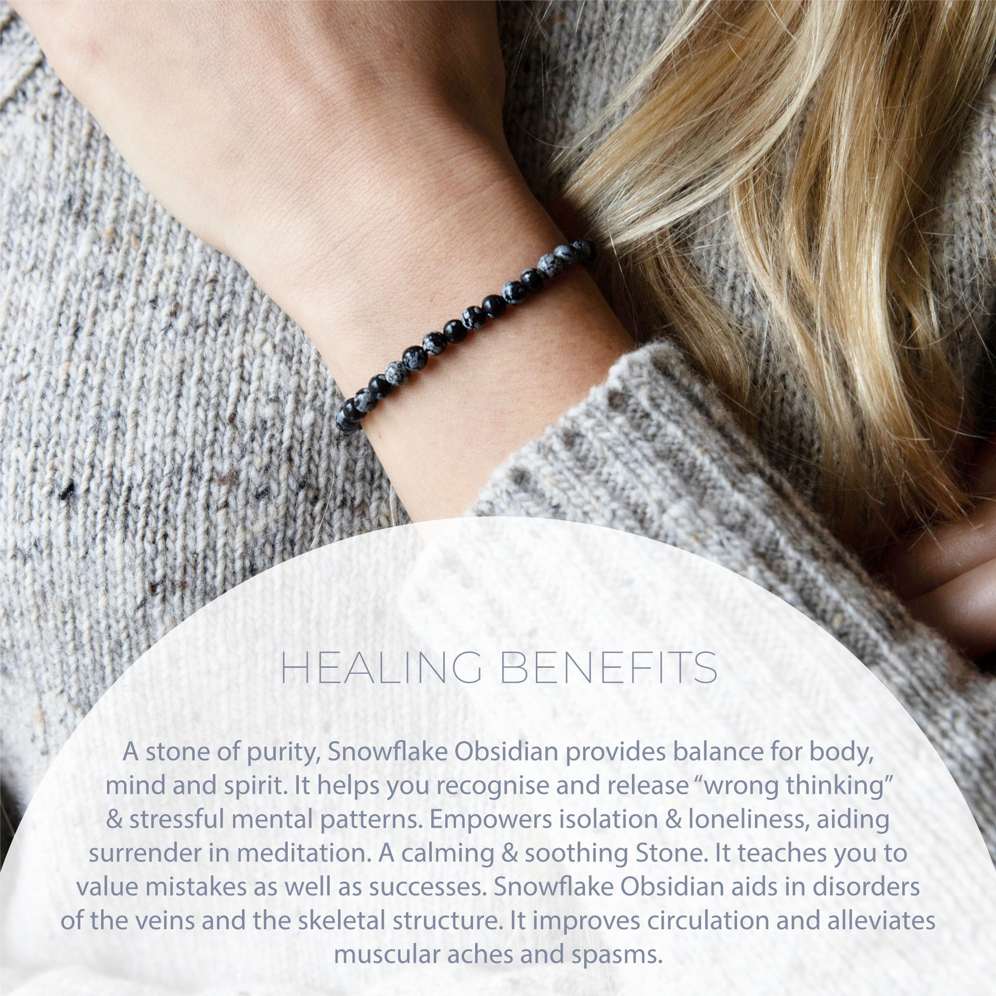 HEALING SNOWFLAKE OBSIDIAN BEAD BRACELET 4MM
