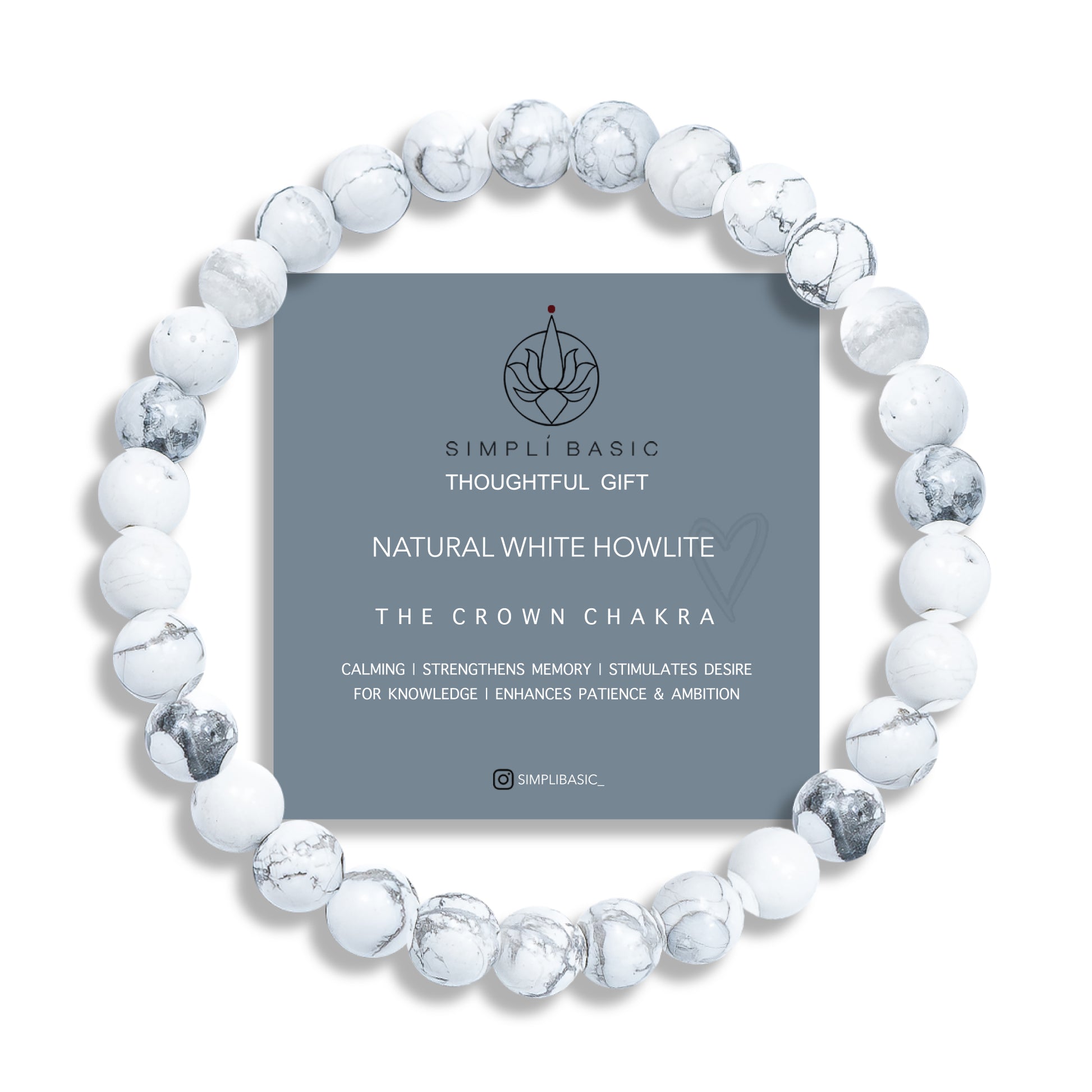 HEALING WHITE HOWLITE BEAD BRACELET 6MM