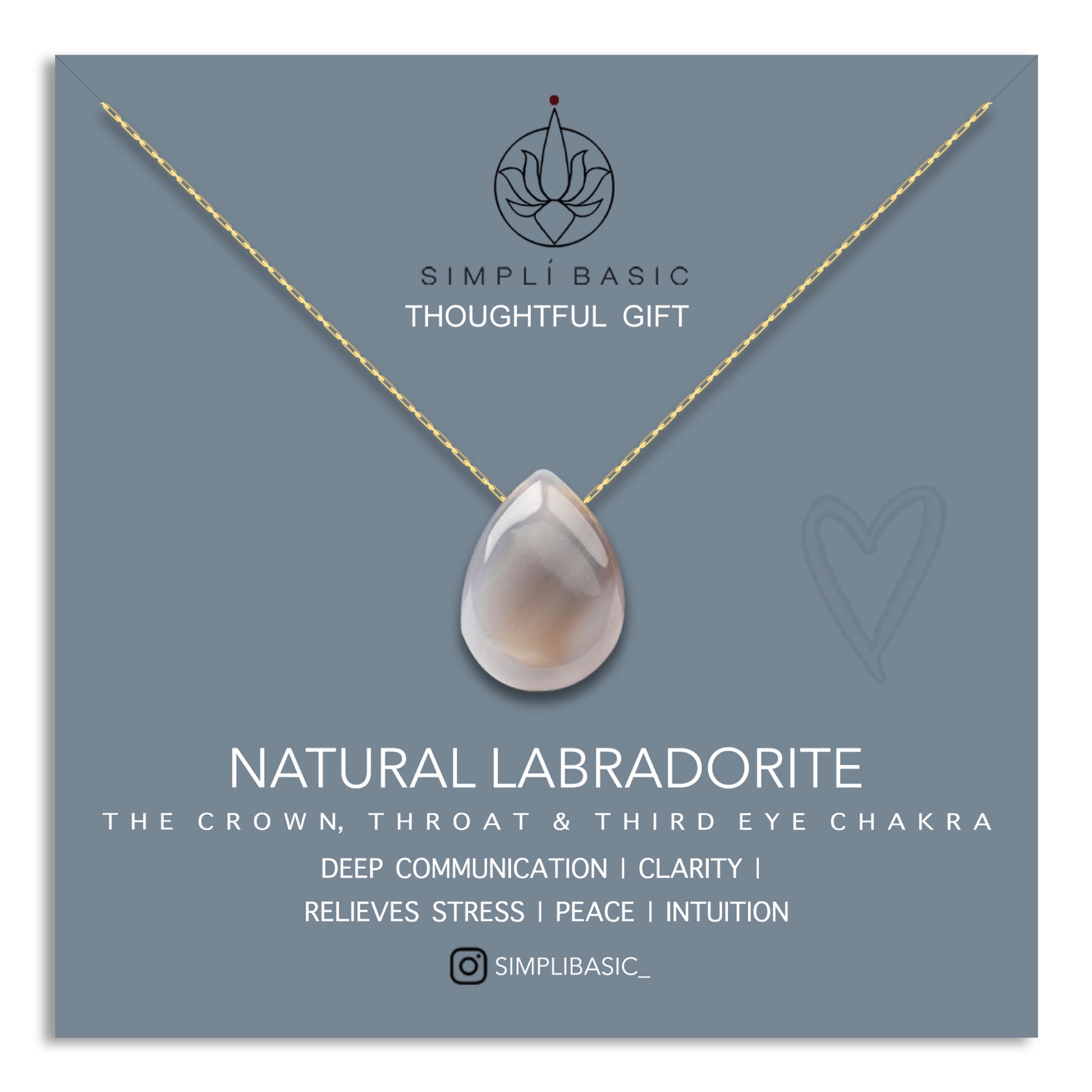 NATURAL LABRADORITE TEARDROP 18K GOLD PLATED CHAIN NECKLACE