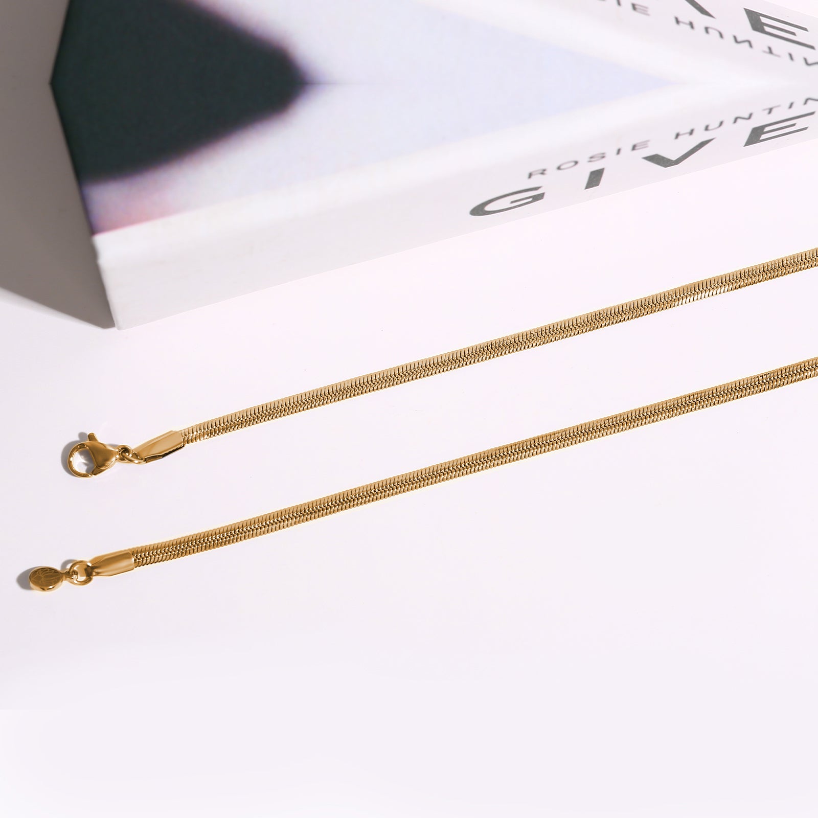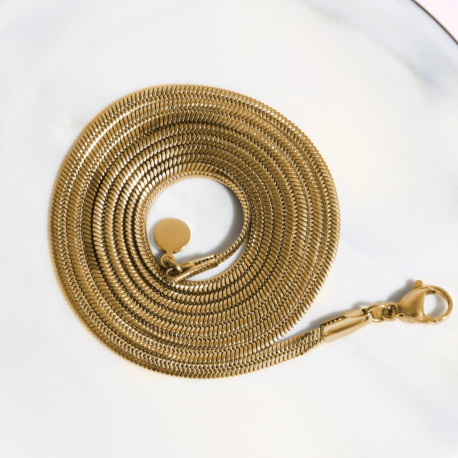 Long Snake Chain Necklace, Stainless Steel 18K Gold
