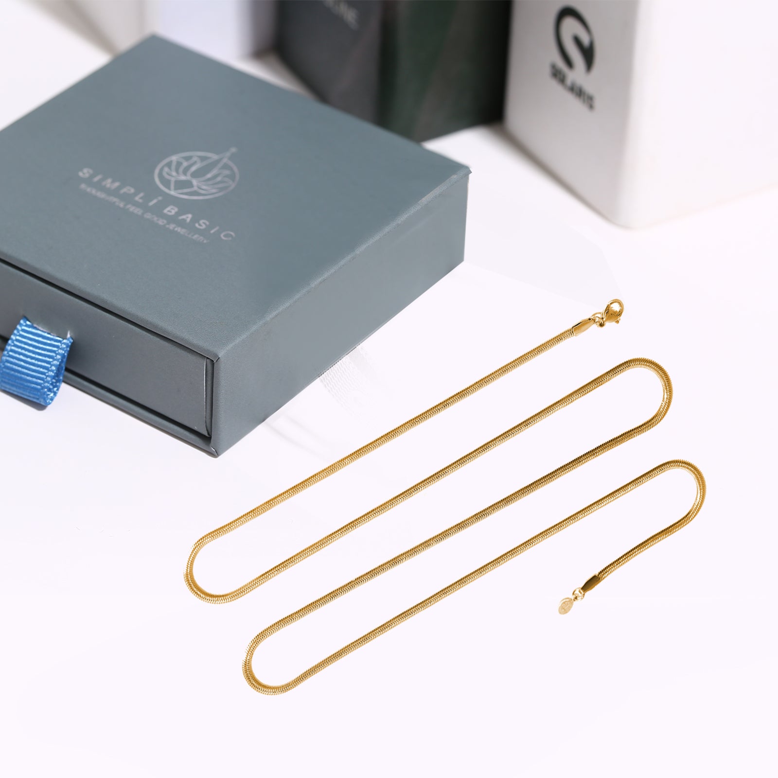 This long snake chain necklace features a sleek and minimalist stainless steel design that is versatile and suitable for any occasion, with 3mm width.