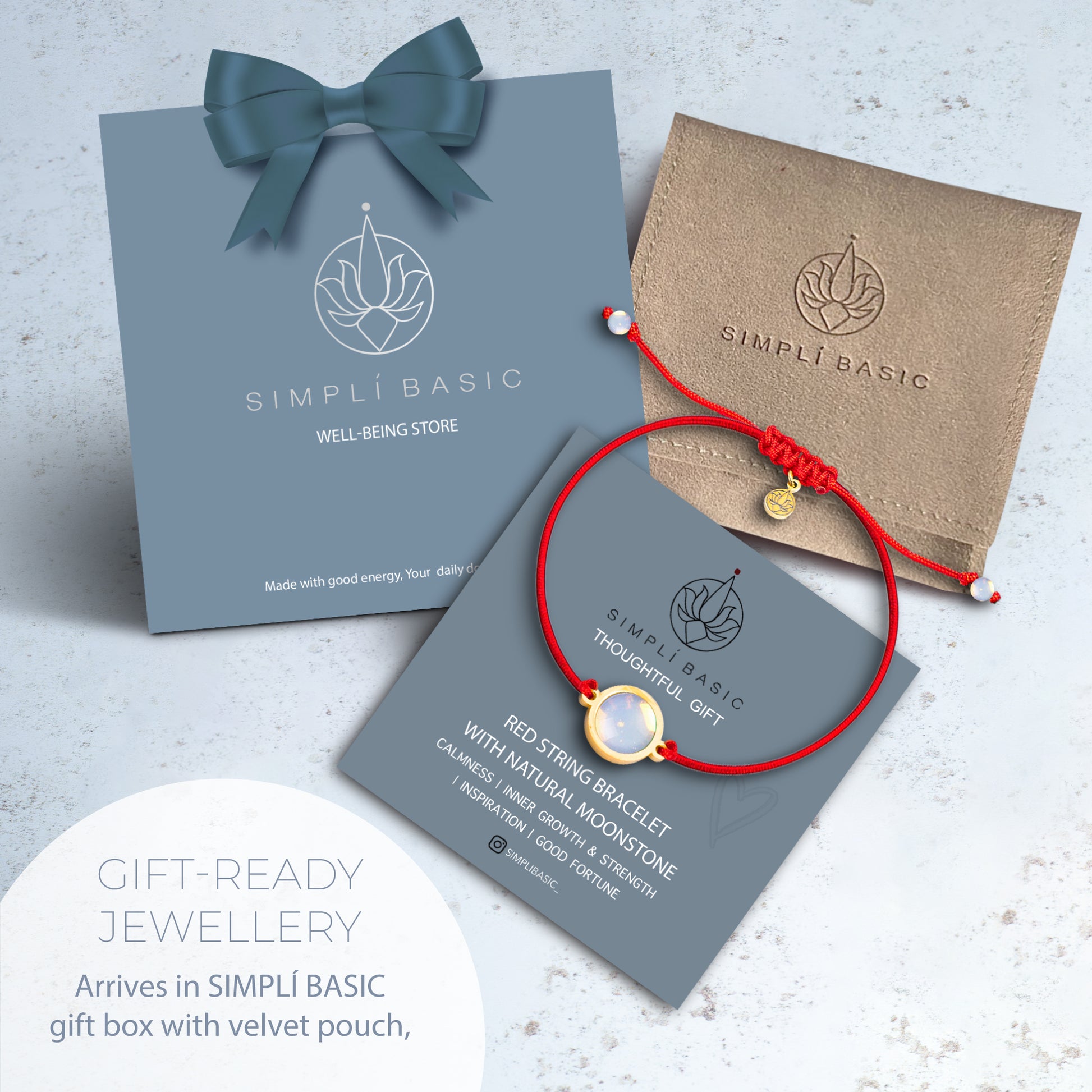 NATURAL MOONSTONE & RED STRING BRACELET – ADJUSTABLE SOFT CORD