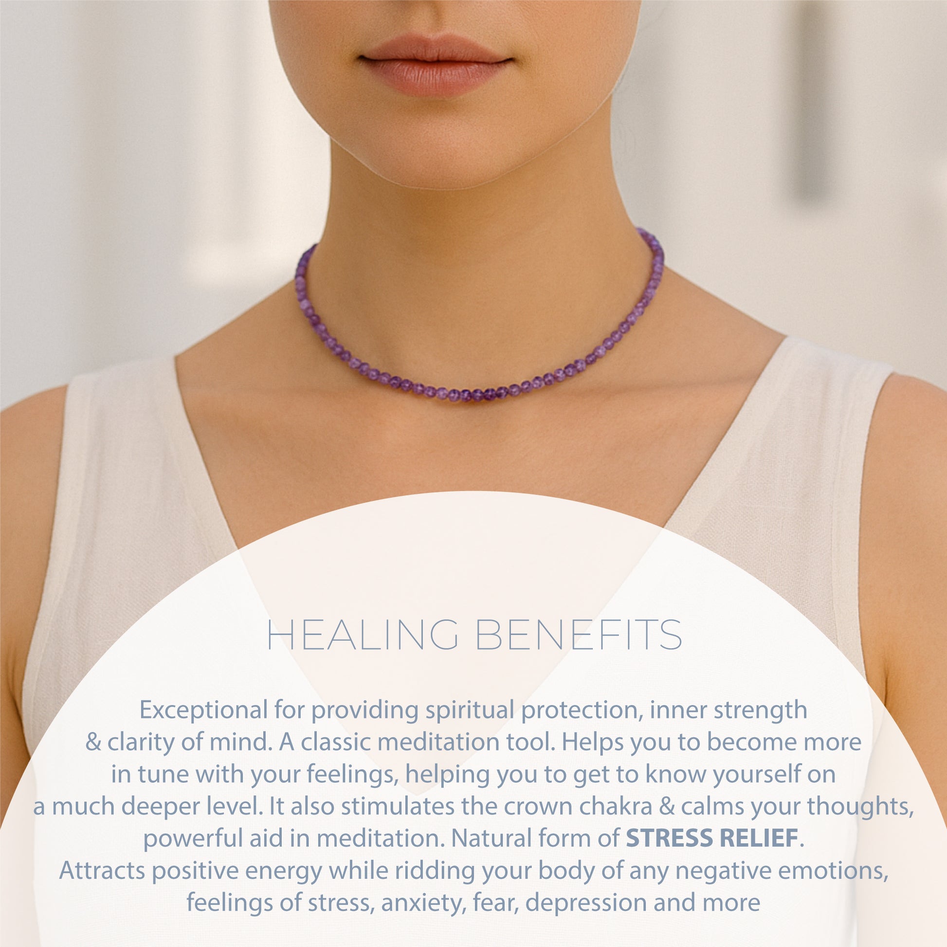 NATURAL AMETHYST HEALING GEMSTONE BEADS NECKLACE
