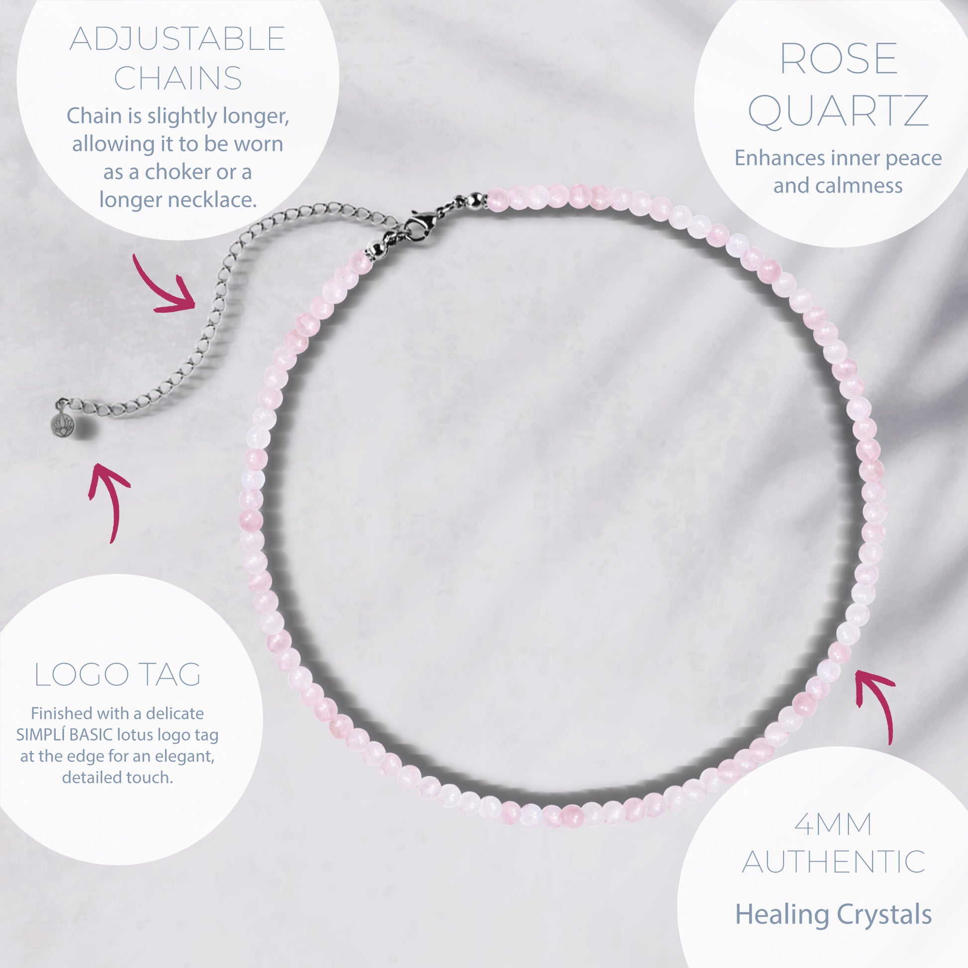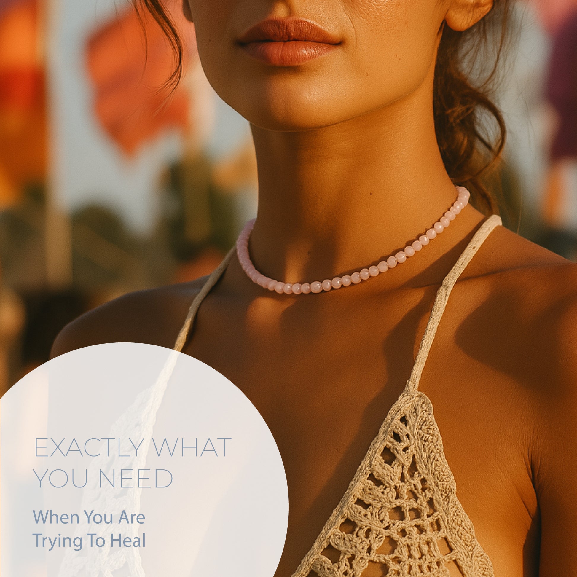NATURAL ROSE QUARTZ HEALING GEMSTONE BEADS NECKLACE