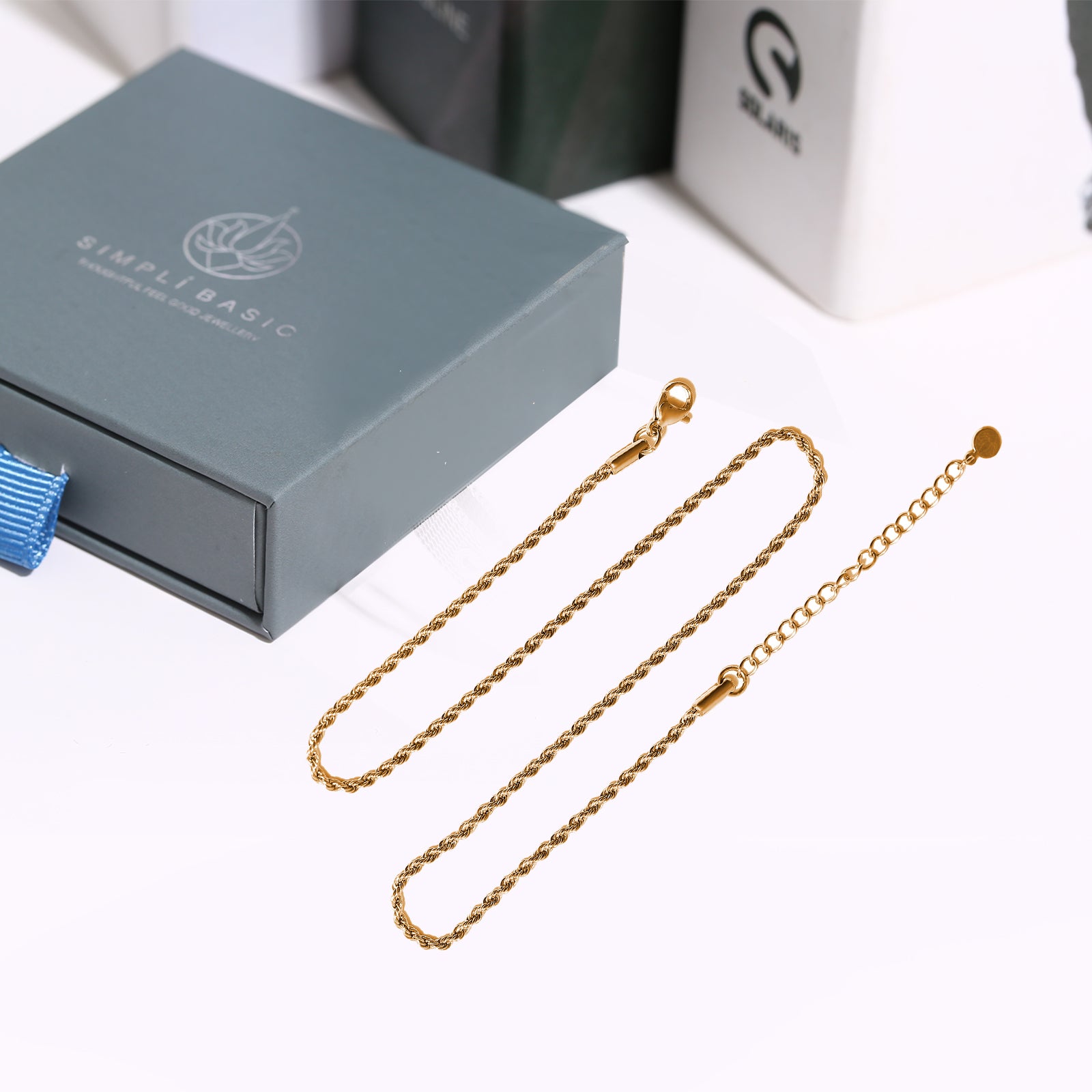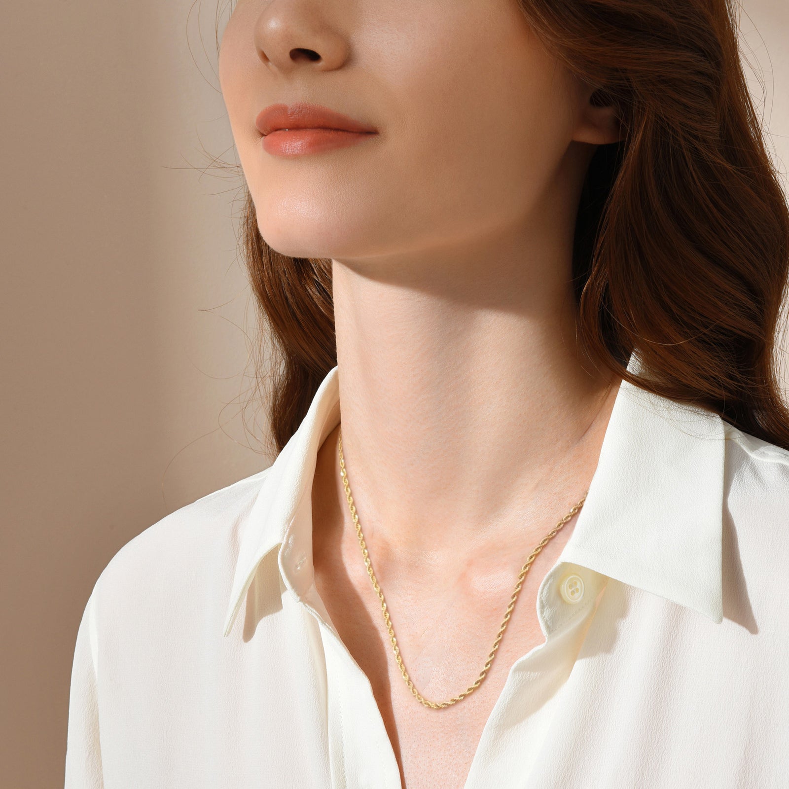 This simple, elegant necklace features a delicate rope chain for a timeless look, with 2mm thickness
