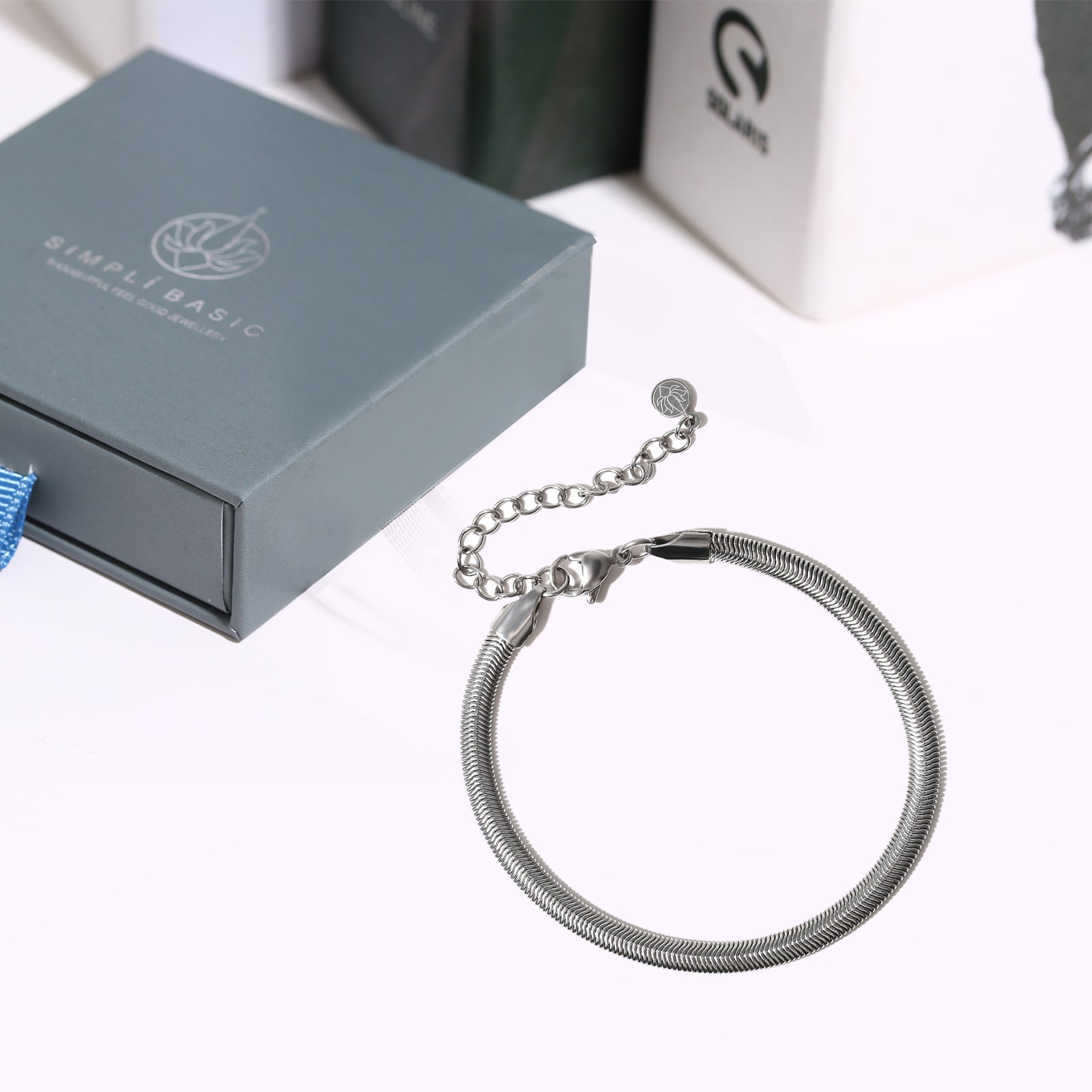 The sleek snake chain pattern adds a touch of sophistication and versatility, making it suitable for various occasions. 4cm Width.