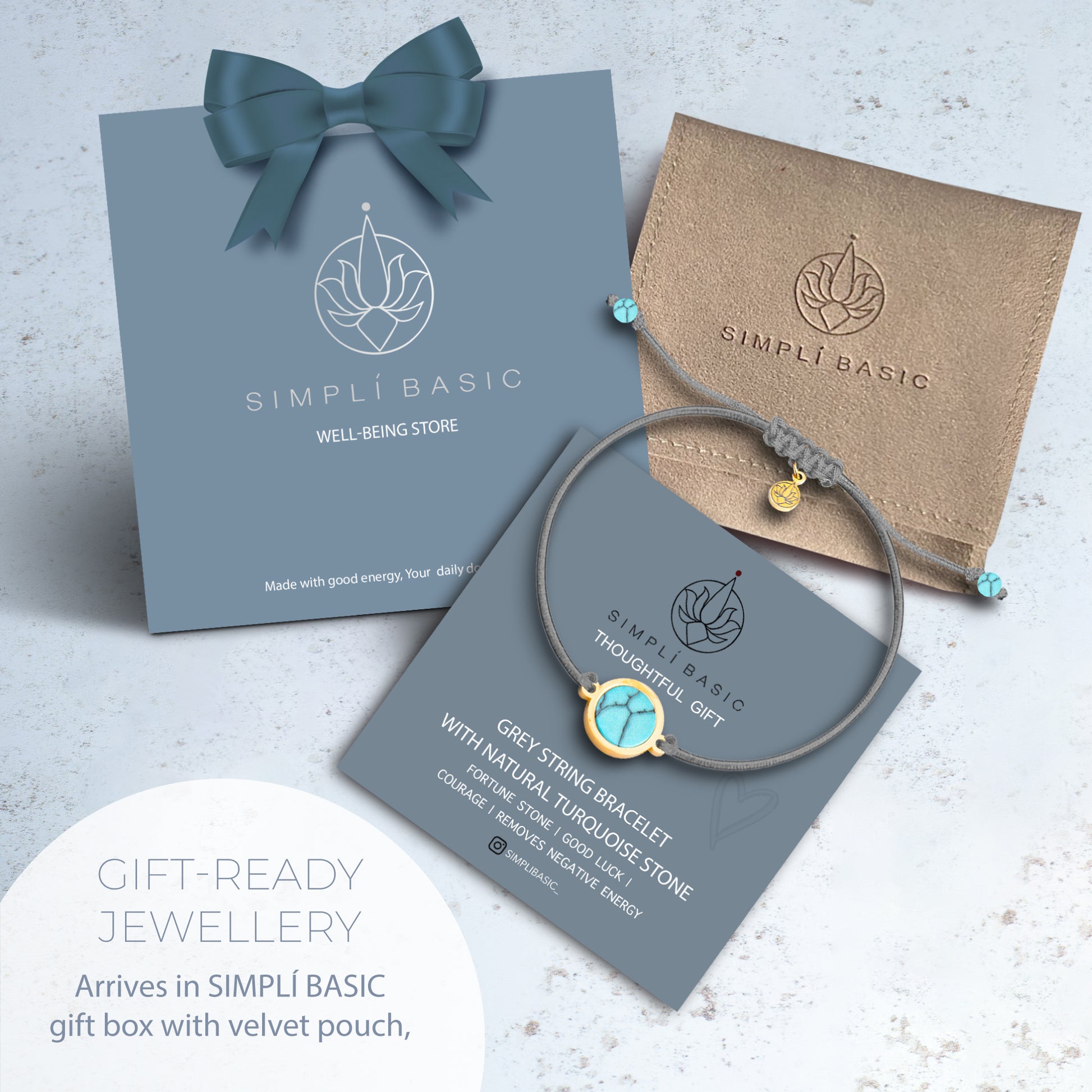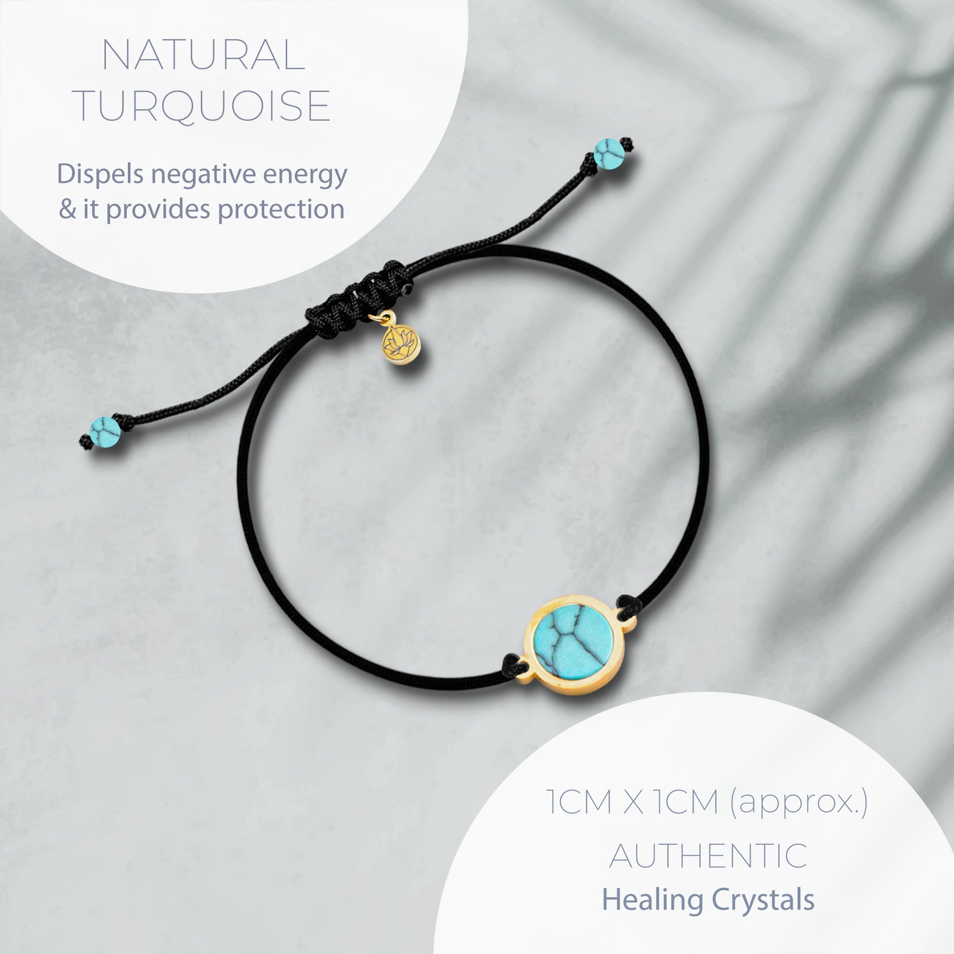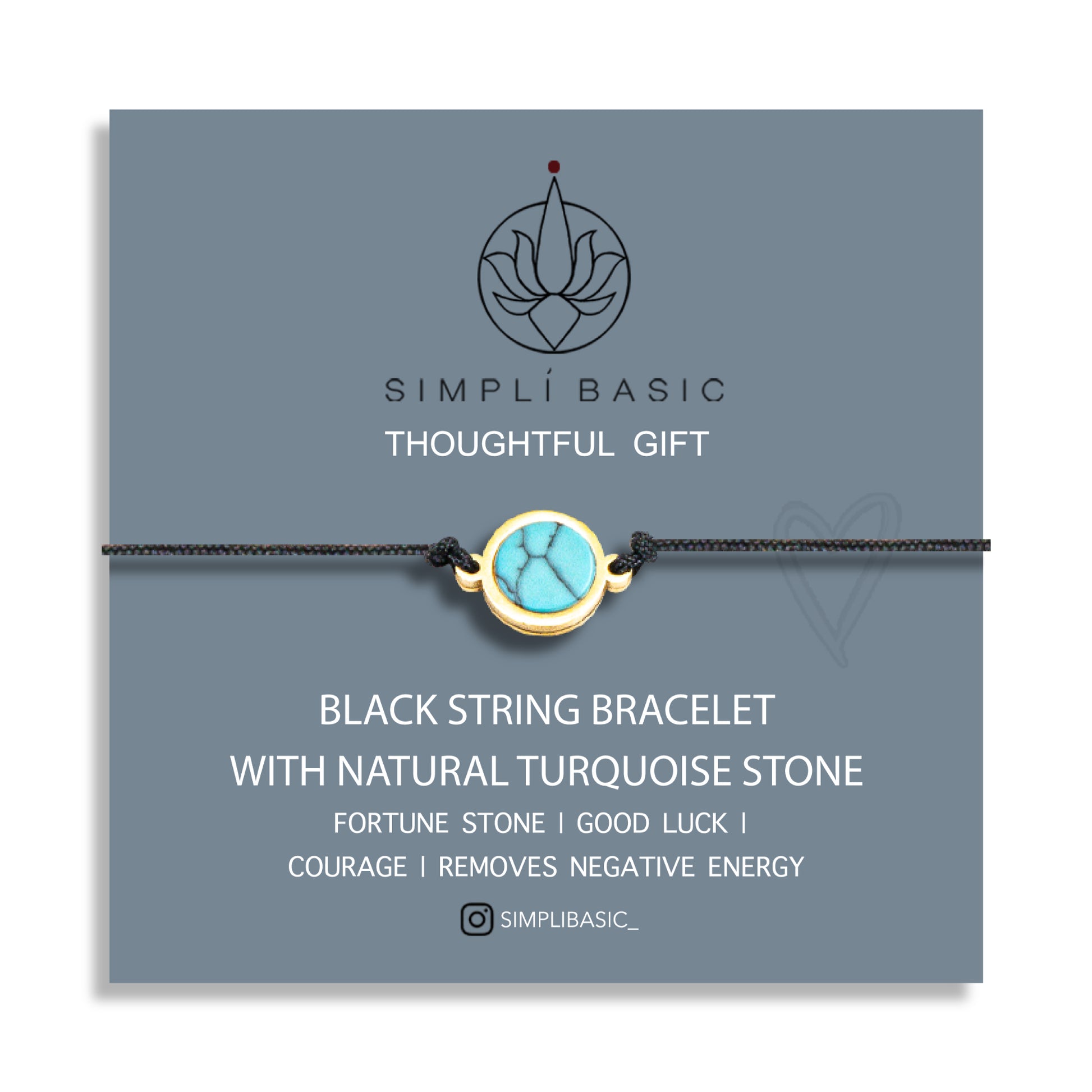 NATURAL TURQUOISE STONE STRING BRACELET – ADJUSTABLE BLACK SOFT CORD