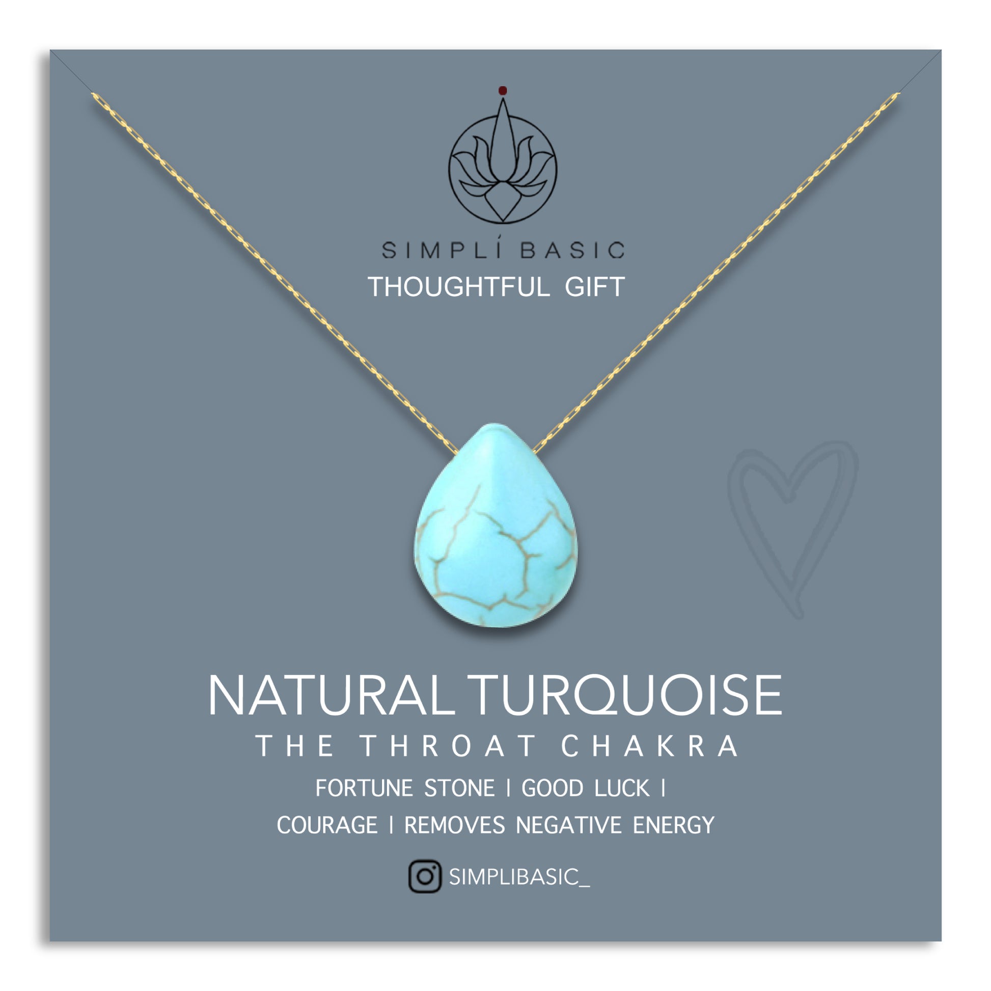 NATURAL TURQUOISE TEARDROP 18K GOLD PLATED CHAIN NECKLACE